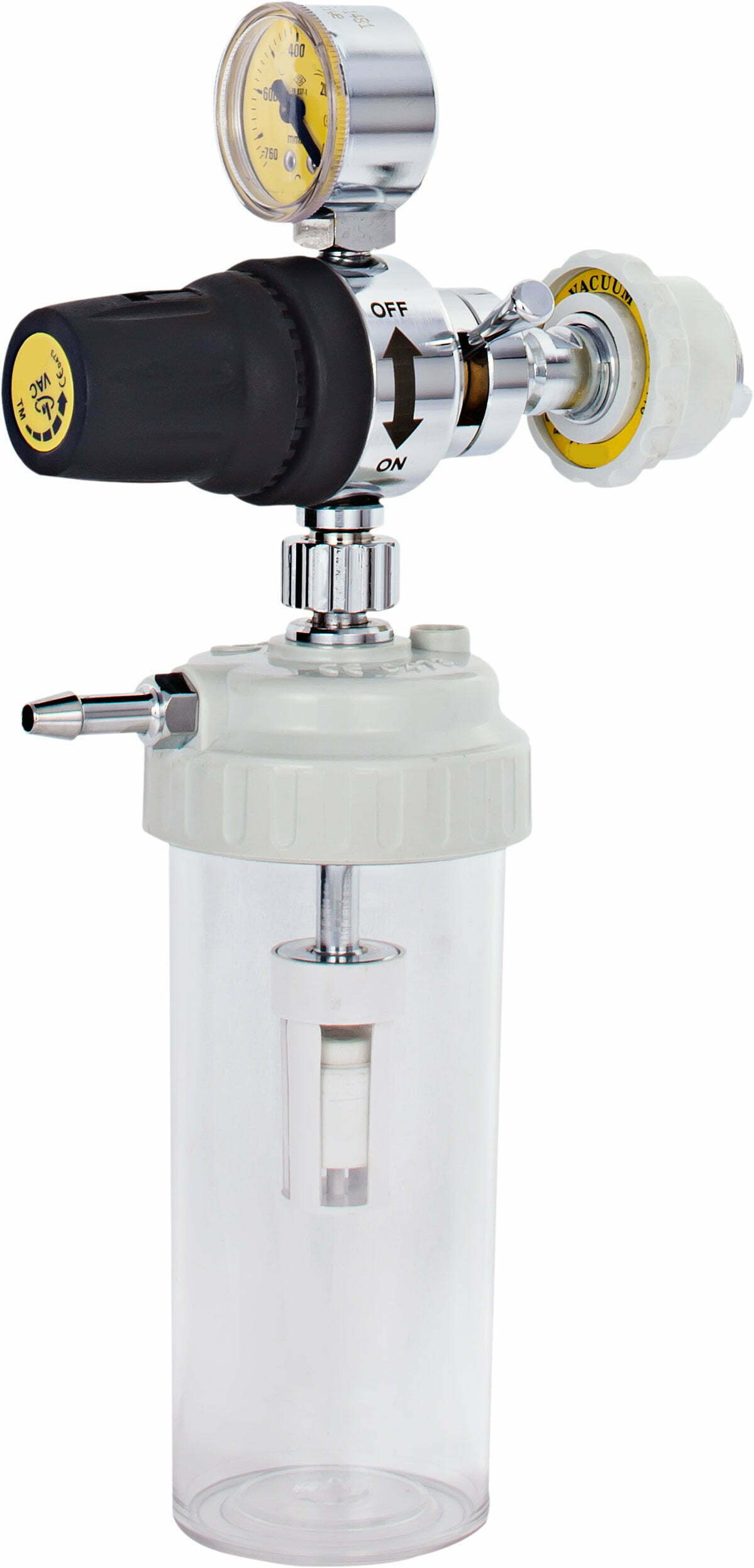 Description: Regulates pressure of vacuum and delivers consistent vacuum from gas outlets to the medical devices. With bottle.