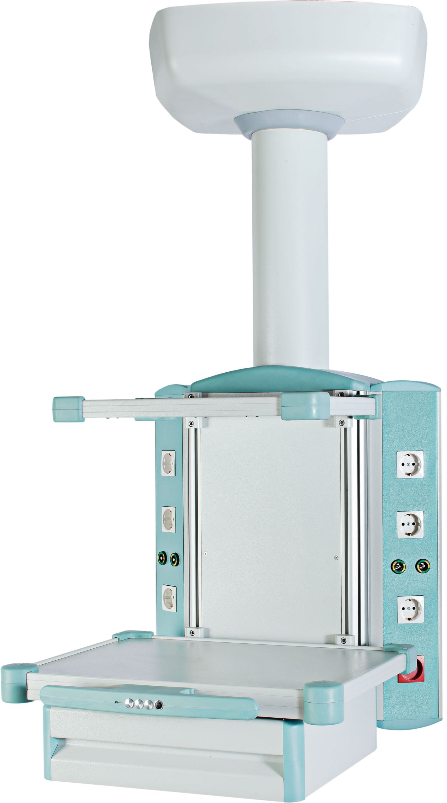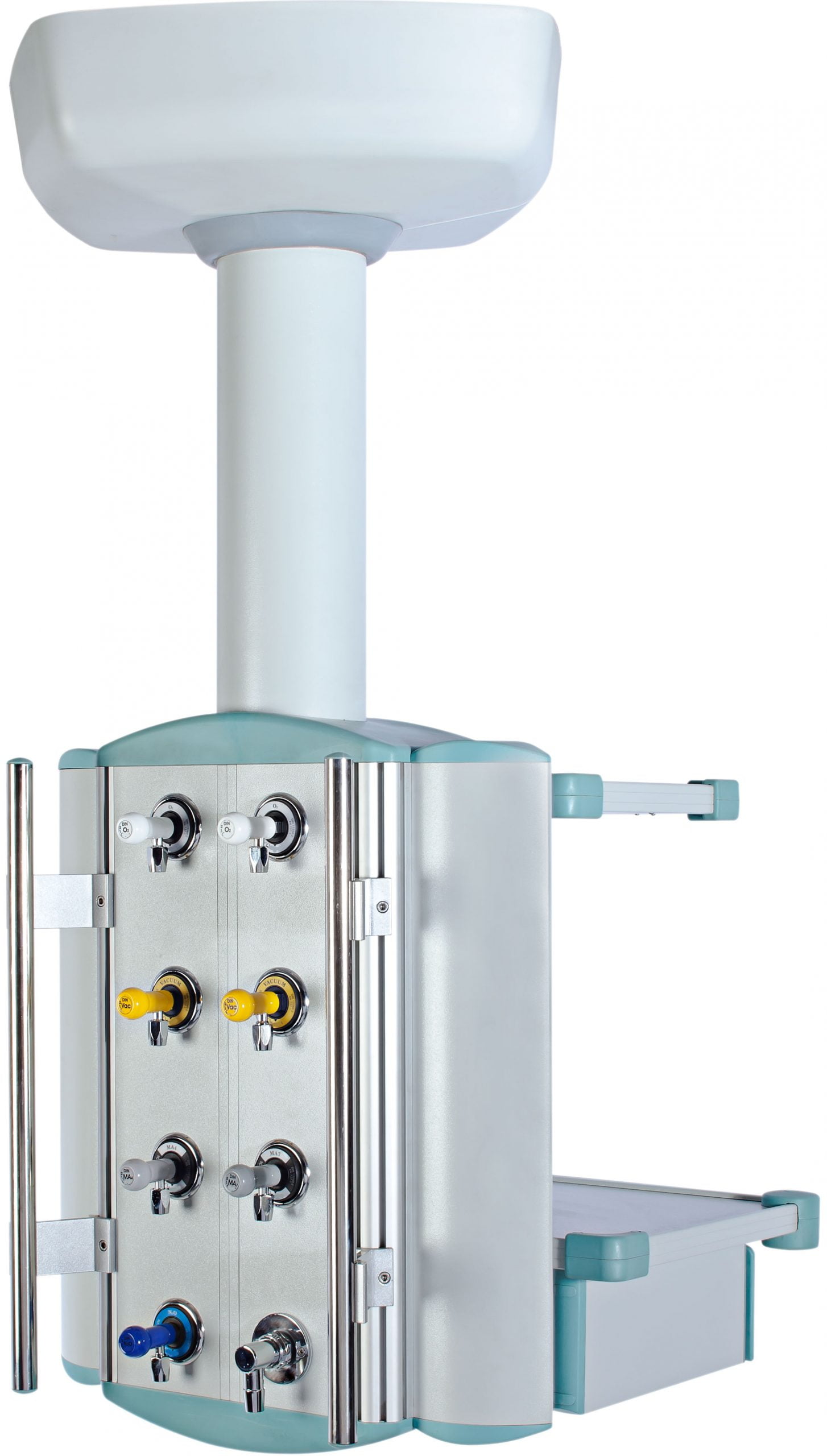 Gas outlets, IV Stands, instrument basket, vacuum carrier.